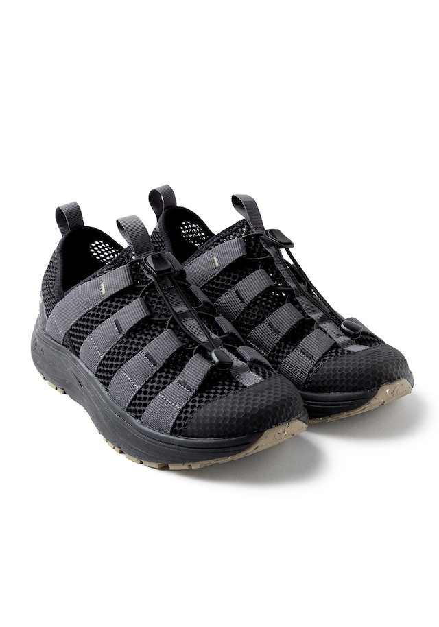 〝 fashion + bicycle 〟をコンセプトにつくられた nariifuri とリカバリーサンダルメーカー rig とのコラボレーションモデル。 2019年設立の日本初となるリカバリシューズメーカー〝 rig / リグ 〟、 日常やトレーニングによる身体への負荷やストレスを開放することをコンセプトに、 トライアスリートからフィードバックされた 様々なスタイルのリカバリーシューズを開発しています。 衝撃吸収性・疲労回復性に優れた特徴的なrigオリジナルの厚底ソールに アッパーにはメッシュ素材を使用することで通気性を確保しています。 自転車に乗る上で危険にさらされる【 つま先・踵・甲の部分 】を保護し、 ゴム紐ストラップ仕様で甲幅の調整が可能です。 夜間の被視認性を向上する踵部分のリフレクタープリントは、 コラボレーション限定のスペシャルな仕様 、 踵部分を踏んで履くことでスライドサンダルとしても着用できる2WAY仕様になっています。 人体工学に基づき開発されたフットベットは、 軽量で衝撃吸収性に優れ、 足腰への負担を軽減することで リラックス感と疲労回復を高めます。 ●カラー コヨーテ、カーキ、ブラックの3色展開 ●サイズ US5:23cm US6:24 cm US7:25 cm US8:26 cm US9:27 cm US10:28 cm US11:29 cm