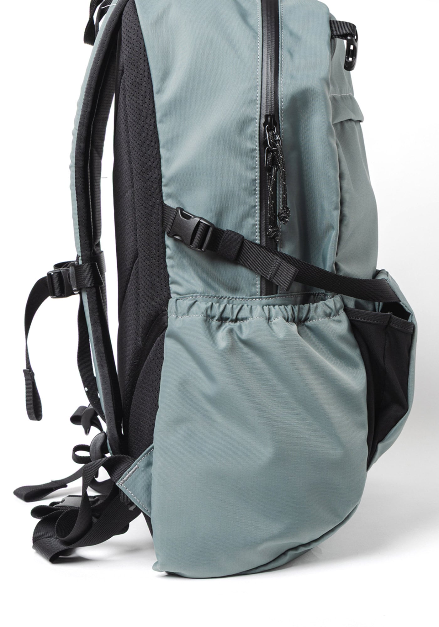 両サイドには口元ゴム仕様のポケットを配し、
