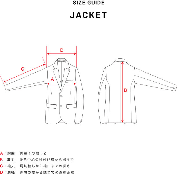 XS:胸囲 127 ( 115 ) cm 肩幅 51 cm 裄丈 78 cm 着丈 63 cm