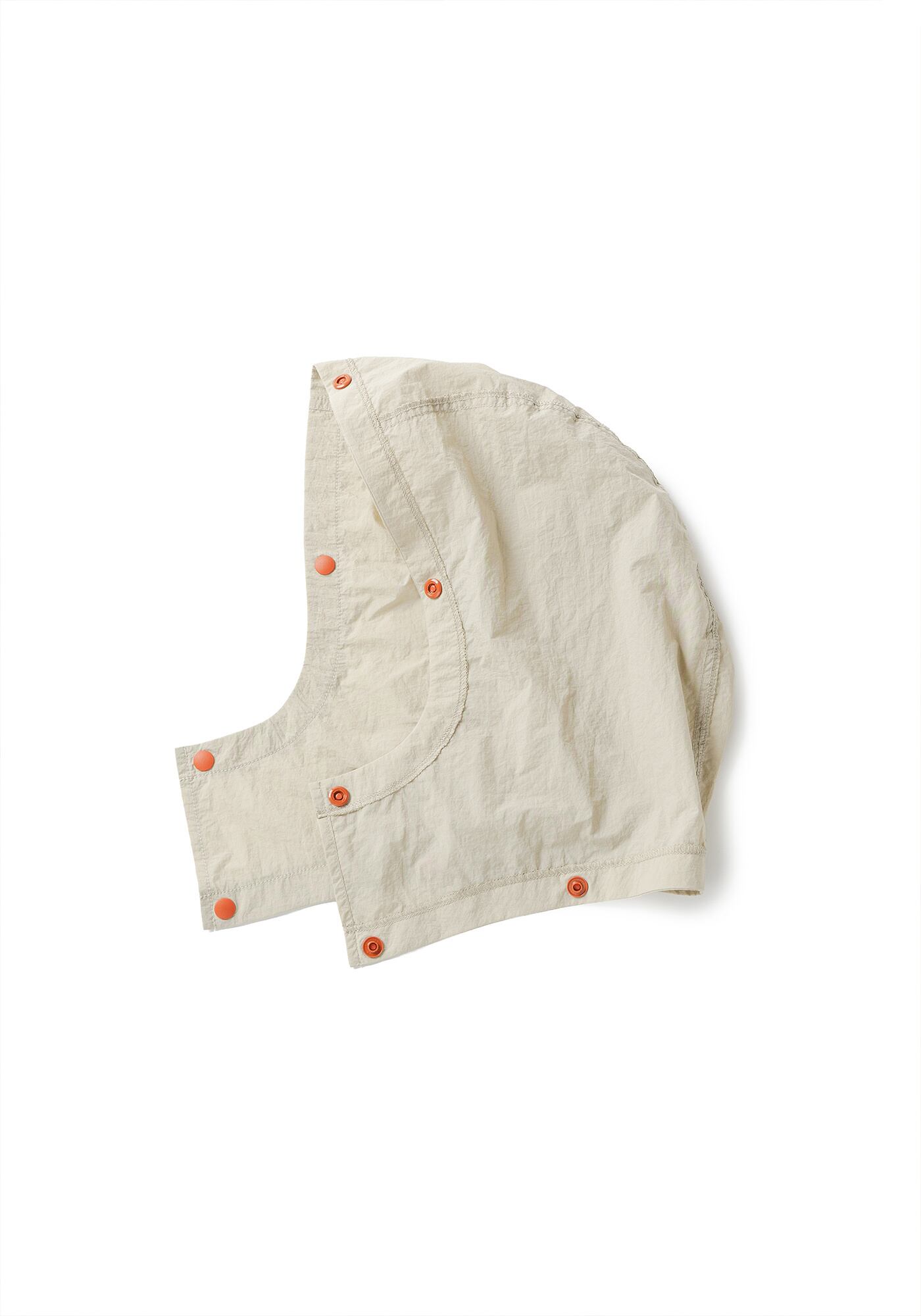 フードの衿周りは取り外して洗濯が可能なファンデーションガードを備え、
