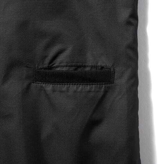 脇下にはファスナー開閉によるベンチレーションシステムを採用し、