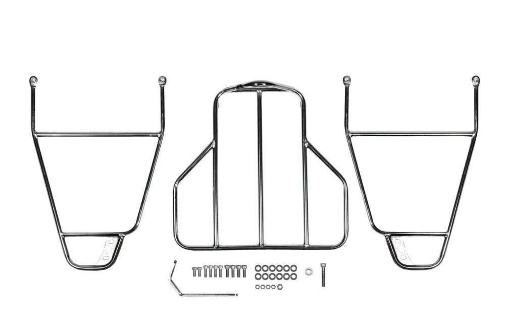 側面にはパニアなどバイクパッキングを快適にする最強のフロントラックです。