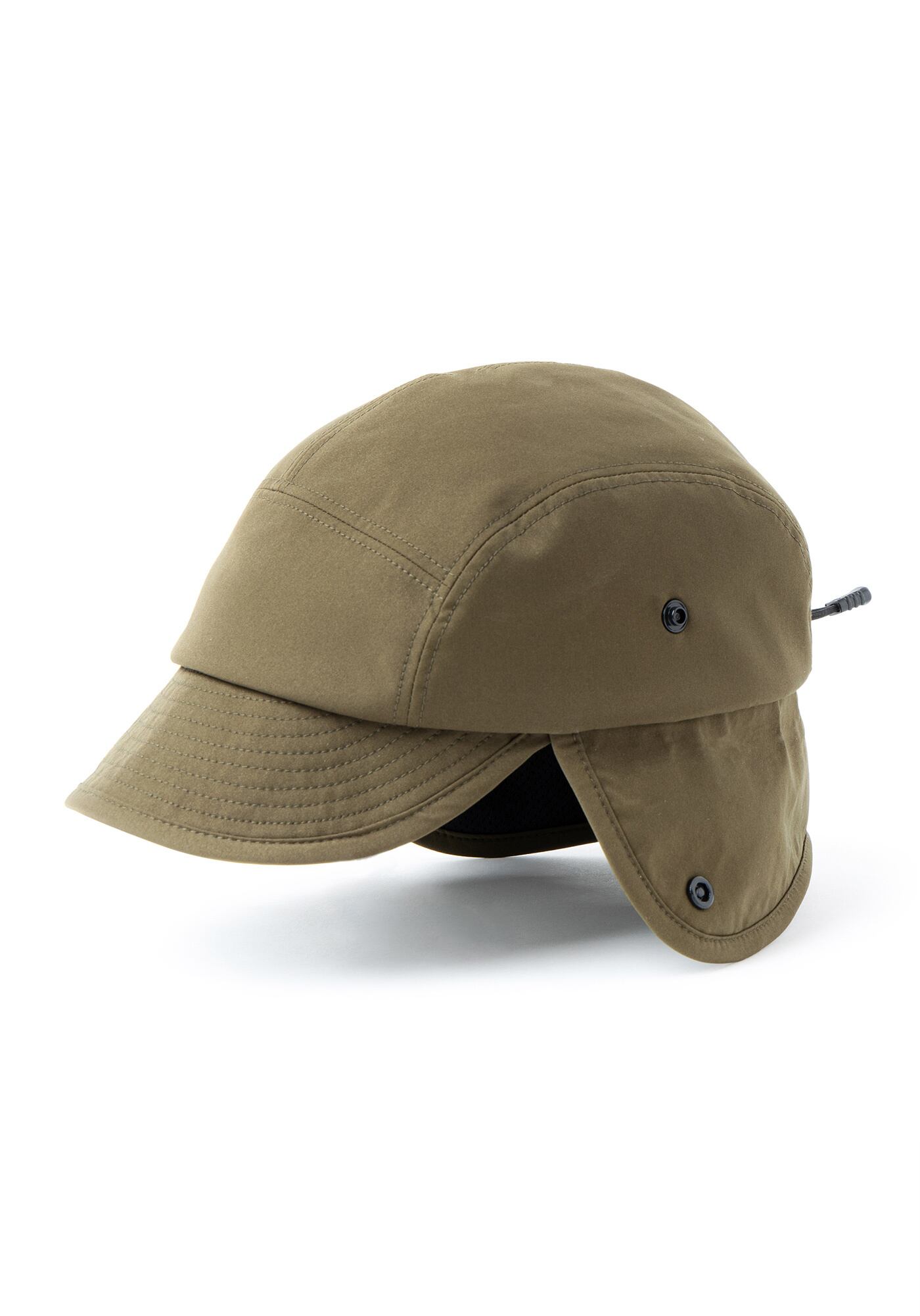厳冬期でも快適な耳あて付きジェットキャップ。