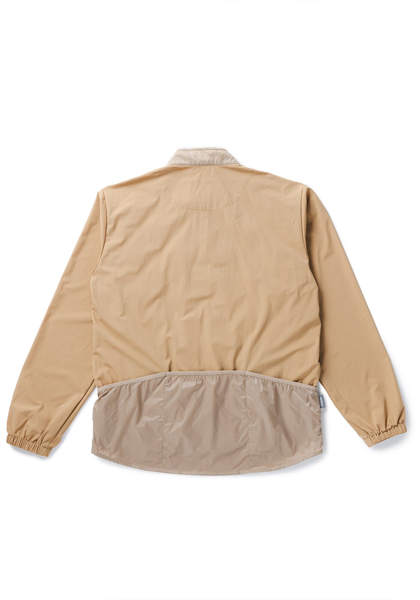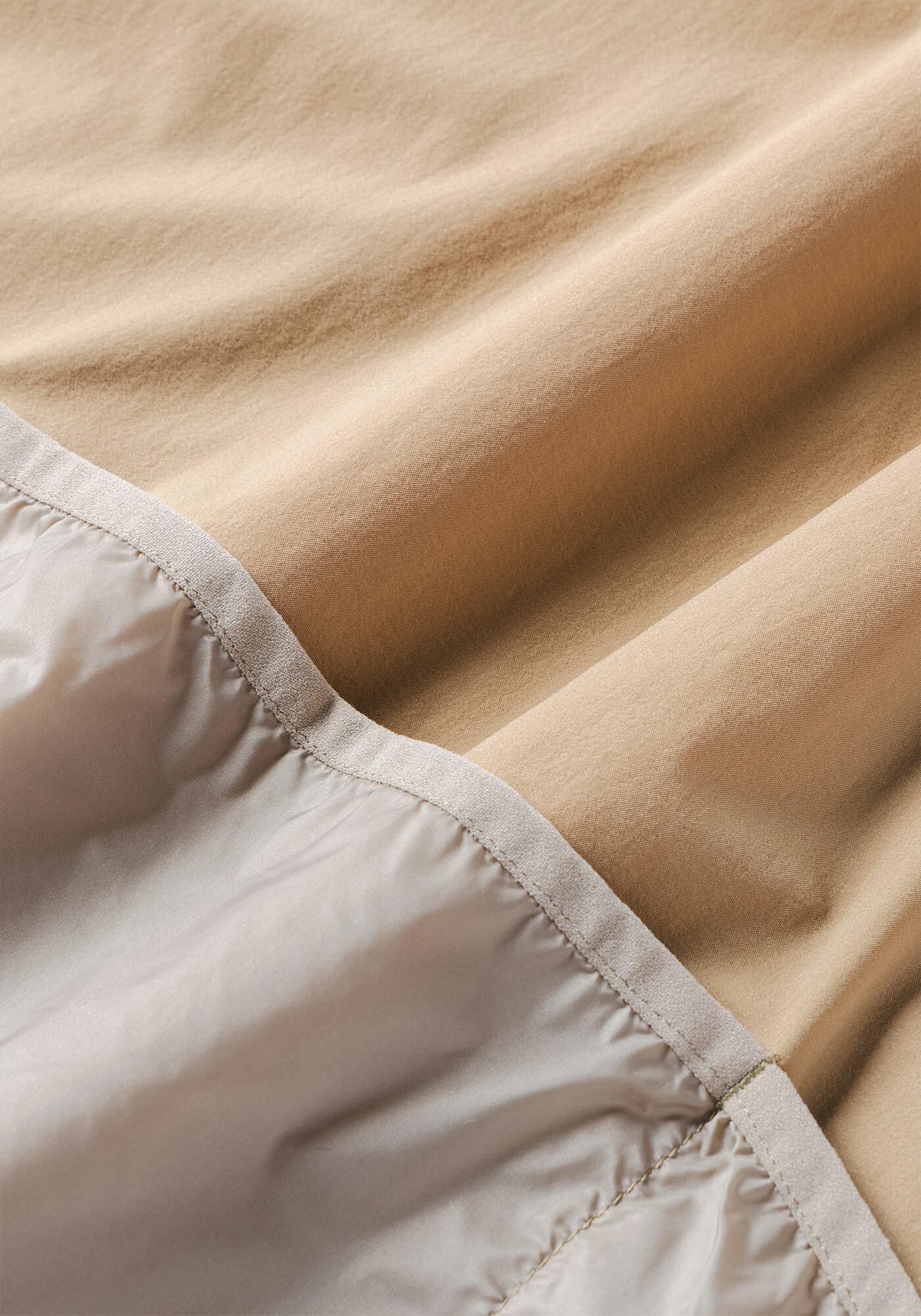 前見頃には軽量で保温性に優れ撥水性を持たせた高密度タフタ生地に